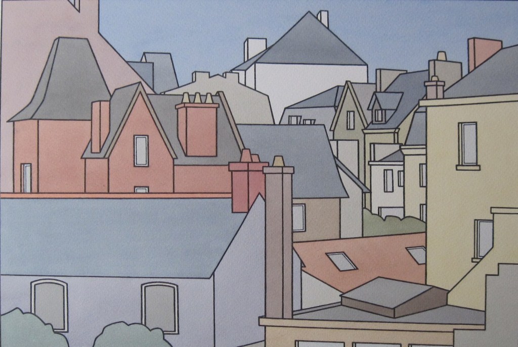 Mes oeuvres commencent par des dessins – d’un style traditionnel et minutieux, ou simplifié et applati – avant d’etre aquarellés aux couleurs tendres.