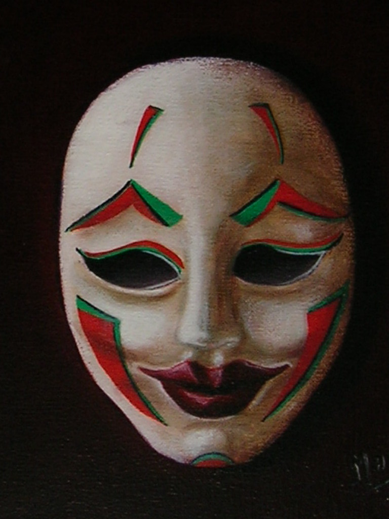 Les portraits, masques, drapés font partie de mes sujets préférés. La précision, le souci du détail me conduisent peu à peu vers le Trompe l’œil et