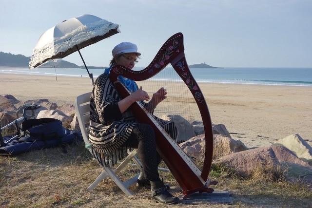 Artiste dans l’âme, je suis aussi musicienne, j’adore la douceur de la harpe qui se marie parfaitement aux sons naturels, vent, chants d’oiseau, bruit de vagues.