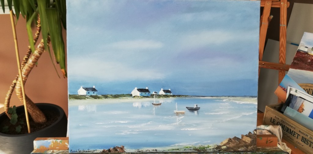 Je pratique désormais essentiellement la peinture à l’huile, c’est cette technique que je préfère travailler et qui me permet de traduire les émotions que je ressens face aux somptueux décors de notre belle région.