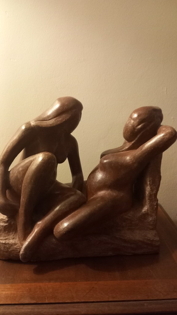 Je sculpte essentiellement des femmes, des groupes d amis. Je voyage parmi des rondeurs , les formes , la plenitude et la sérénité de la terre.